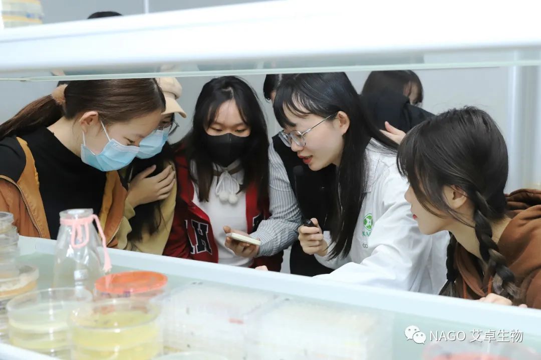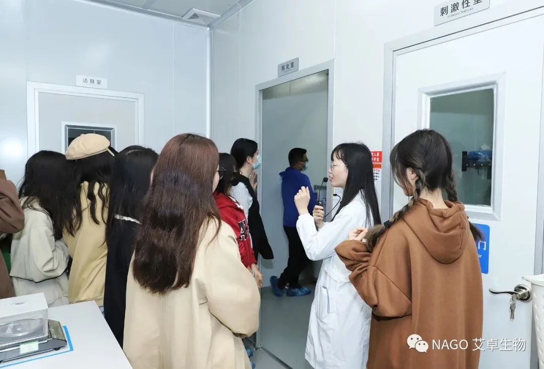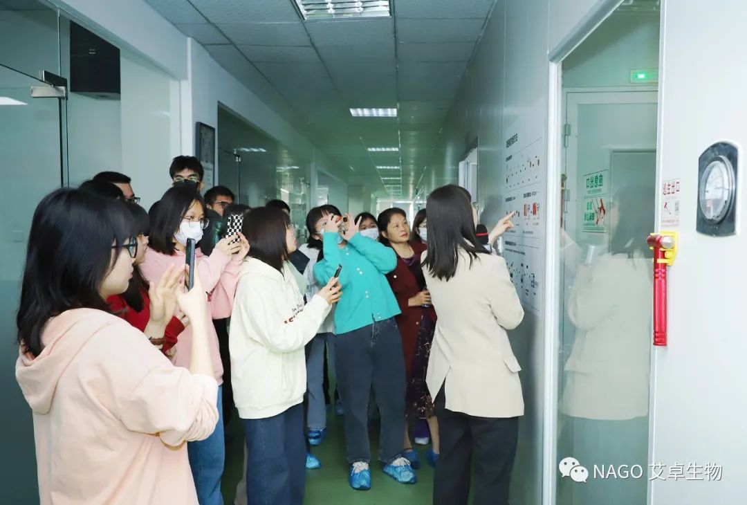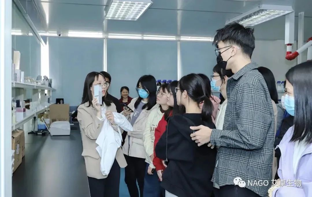 艾卓生物分析中心冼主任和技術(shù)支持周曉婷帶領(lǐng)肇慶學(xué)院師生參觀艾卓實(shí)驗(yàn)室,讓大家了解產(chǎn)品的研發(fā)、應(yīng)用、產(chǎn)品質(zhì)控、功效評(píng)價(jià)以及微生物領(lǐng)域相關(guān)知識(shí)。