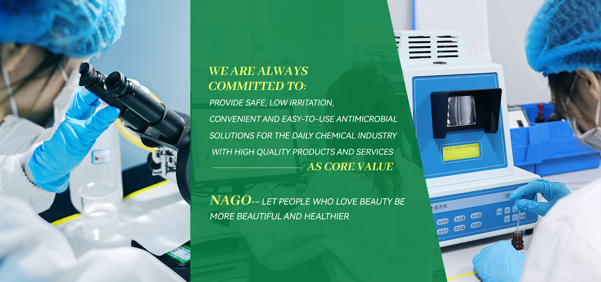 NAGO is committed to the development and application of new antimicrobial agents from natural sources, providing a safer and less irritating antimicrobial solution for the cosmetics industry, replacing the traditional anti-corrosion agents (mainly formaldehyde sustained release and isothiazolinone), which have strong irritation, sensitization or carcinogenic potential.